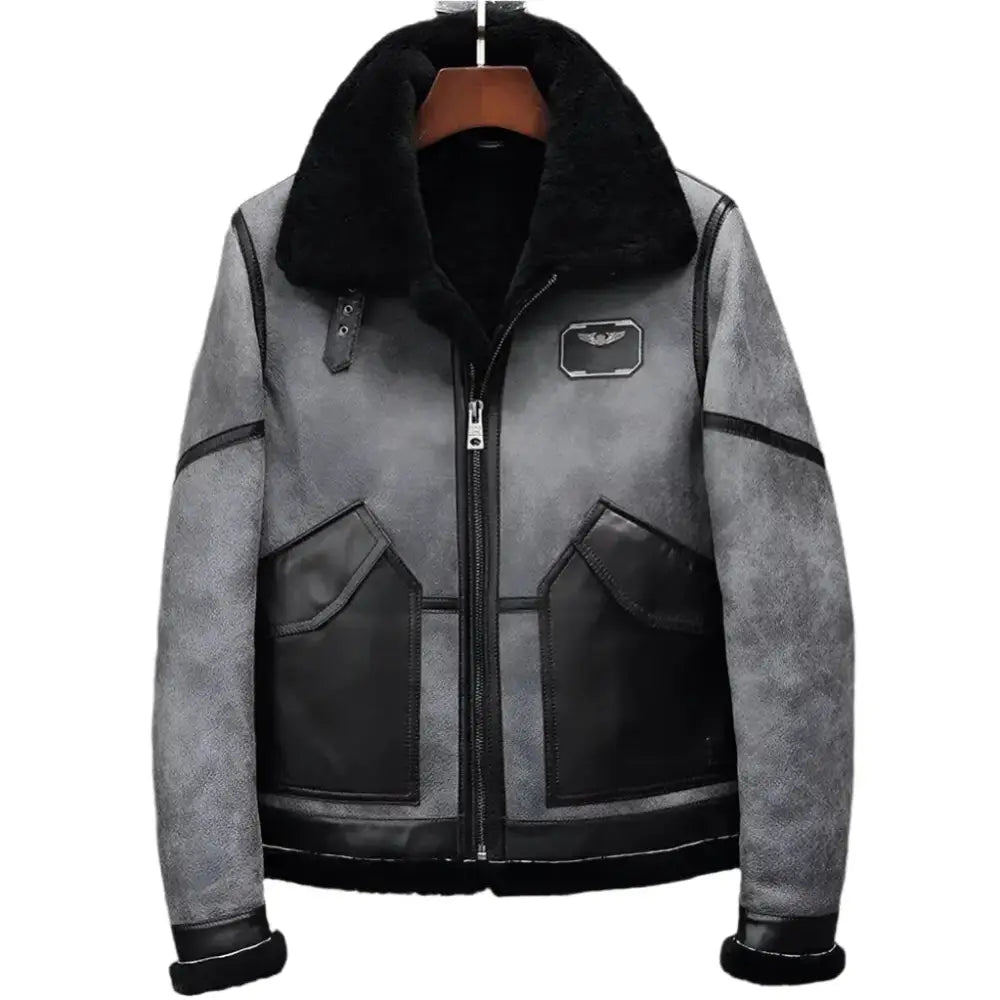 Modern Gray B3 Shearling Jacket Sheepskin Coat