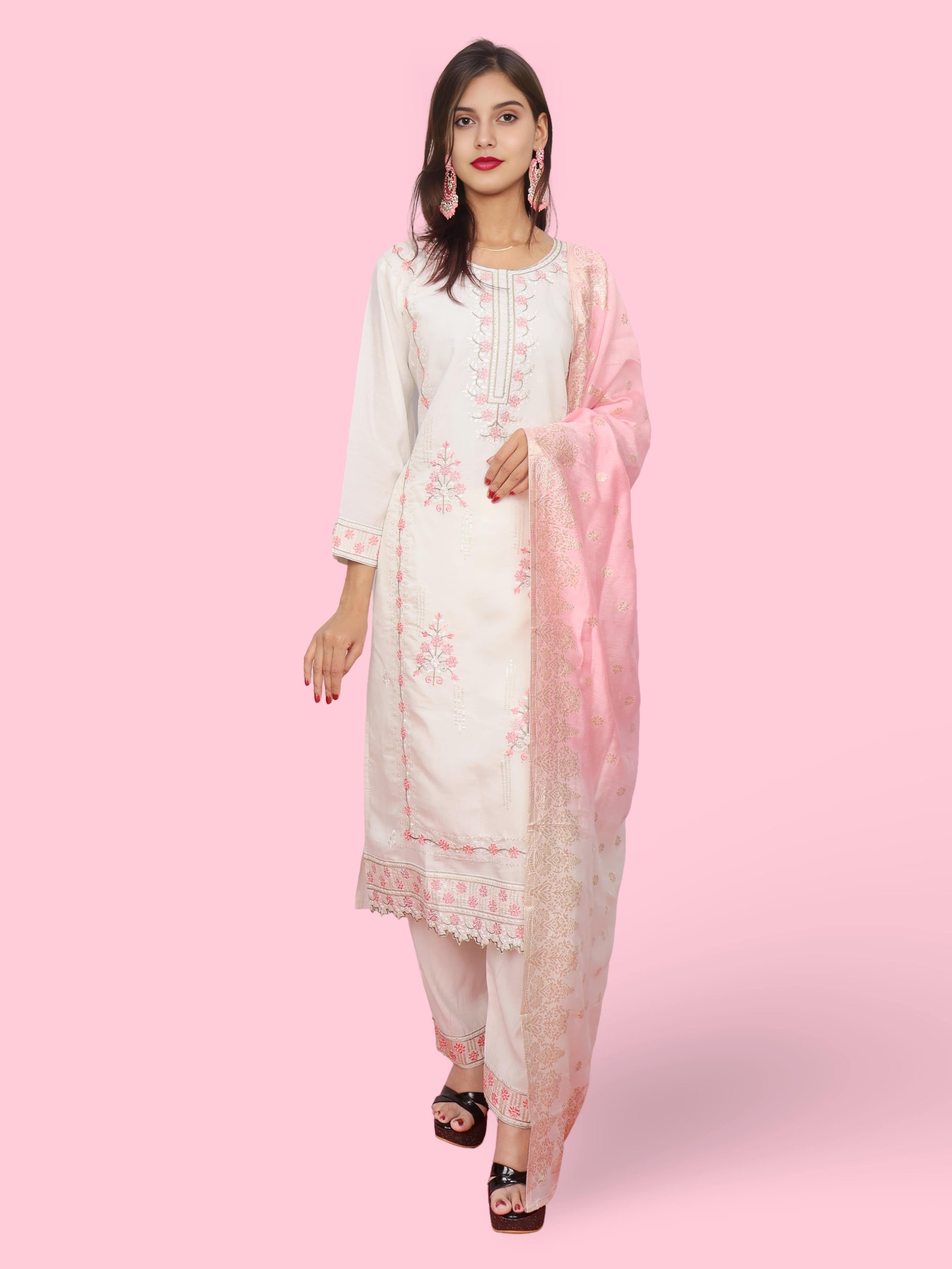 Discover the elegance of our Party Wear Embellished Kurta Pant Set with Dupatta, crafted for women who wish to shine at festive and special events. This beautifully tailored kurta set is made from premium fabric, providing both comfort and style. The intricate embellishments on the kurta and the coordinating dupatta lend a touch of luxury, making it the perfect option for weddings, festivals, and other celebrations. Elevate your festive ensemble by accessorizing with statement jewelry and chic heels.